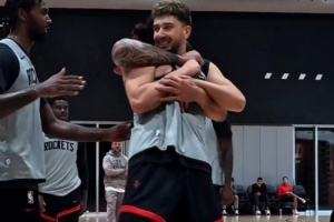 體育資訊10月2日訊 近日在火箭隊內(nèi)的訓練中申京面對亞當斯的防守貢獻了一記暴扣,之后又在后者面前投進了一個三分,結(jié)果慘遭海王“鎖喉”。