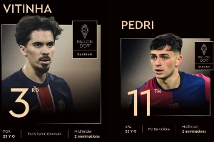 體育資訊10月02日訊 歐冠聯(lián)賽階段第2輪,巴薩主場1-2遭巴黎逆轉(zhuǎn)絕殺,今年金球排名第11的佩德里(22歲)和金球排名第3的維蒂尼亞(25歲)均首發(fā)出戰(zhàn)。