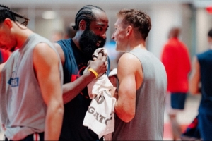 體育資訊10月2日訊 今天,快船官方曬出了球隊訓練營第二天的照片,哈登和博格丹喜笑顏開。