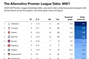 在本賽季英超預(yù)期進(jìn)球值與實(shí)際進(jìn)球值榜單中,熱刺是表現(xiàn)最好的,他們實(shí)際進(jìn)球比預(yù)期進(jìn)球多4.1個(gè),利物浦(2.9個(gè))、阿森納(2.6個(gè))、曼城(2.6個(gè))分居二至四位。