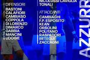 后衛(wèi):巴斯托尼(國(guó)際米蘭)、卡拉菲奧里(阿森納)、坎比亞索(尤文圖斯)、 科波拉(布萊頓)、迪洛倫佐(那不勒斯)、迪馬爾科(國(guó)際米蘭)、加比亞(米蘭)、曼奇尼(羅馬)、烏多吉(熱刺)