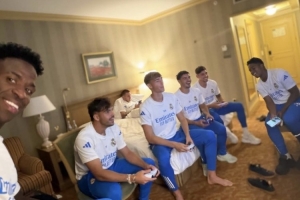 賽前,維尼修斯在社交媒體曬出球隊一起打游戲的照片,照片中迪亞斯、赫伊森等人在內(nèi)。并配文:我的團隊??