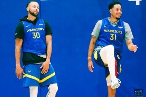 由圖可見,斯蒂芬與賽斯兩兄弟同框,庫明加笑容滿面,球隊新援霍福德也有亮相。