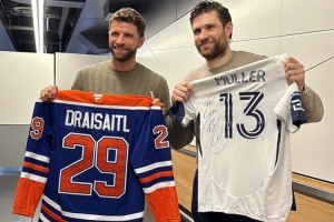 穆勒與德國(guó)冰球選手德賴塞特爾交換球衣并合影,后者效力于NHL埃德蒙頓油人隊(duì),也是司職前鋒,兩人社媒轉(zhuǎn)發(fā)合照,并互稱對(duì)方為傳奇。