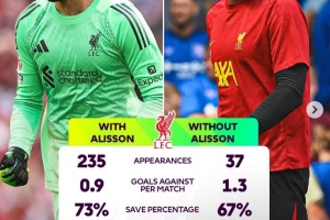 由于阿利森受傷,瑪瑪達(dá)什維利很可能在本場臨危受命。英超官方也盤點(diǎn)了阿利森此前登場與否對(duì)于利物浦的影響,具體如下:
