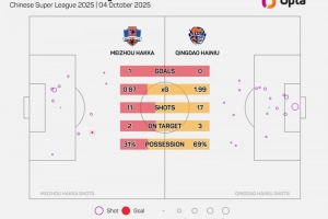 青島海牛本場(chǎng)比賽的控球率為69%,刷新球隊(duì)自2012年以來(lái)單場(chǎng)中超新高。