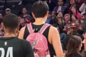 開拓者球迷嘉年華??新秀楊瀚森和樂福背著書包學(xué)跳舞 隊友鼓掌