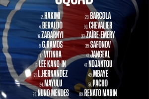 體育資訊10月5日訊 法甲第7輪比賽,巴黎將在客場(chǎng)對(duì)陣?yán)餇?,巴黎公布了此役的球員名單。登貝萊、馬爾基尼奧斯、克瓦拉茨赫利亞、法比安-魯伊斯、杜埃、內(nèi)維斯缺席。