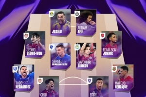 中場:鄭承原(首爾FC)、米林科維奇(利雅得新月)、西迪科夫(納薩夫)、埃迪米森(杜海勒)