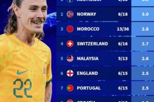 體育資訊10月9日訊 德轉(zhuǎn)統(tǒng)計2025年至今參加5場以上比賽的各國國家隊?wèi)?zhàn)績,澳大利亞、挪威六戰(zhàn)全勝高居第一。