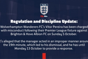 日前,英足總官方發(fā)布公告:“狼隊(duì)主帥佩雷拉在10月5日周日對陣布萊頓的英超聯(lián)賽后被指控行為不當(dāng)。據(jù)稱,佩雷拉在第19分鐘左右行為不當(dāng),這導(dǎo)致他被罰下場,他需在10月13日周一前對此作出回應(yīng)?!?/p>