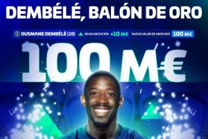 登貝萊上次身價達到1億歐元,還要追溯到2019年效力于巴薩時期。