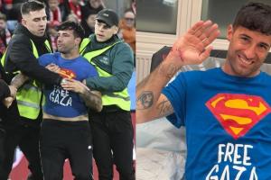 《羅馬體育報》表示,這位球迷名叫馬里奧-費里,過去曾多次在體育比賽中闖進(jìn)體育場。在2022年卡塔爾世界杯,葡萄牙對烏拉圭的比賽時,他也曾手持彩虹旗沖進(jìn)球場,當(dāng)時他的T恤寫著“拯救烏克蘭”的口號。