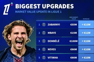 法甲球員身價(jià)上漲排名: