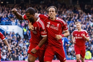 體育資訊10月12日訊 利物浦傳奇隊在客場1-0擊敗了切爾西傳奇隊,荷蘭前國腳巴貝爾打入制勝球,進(jìn)球后他用模仿若塔慶祝動作的方式向他致敬。