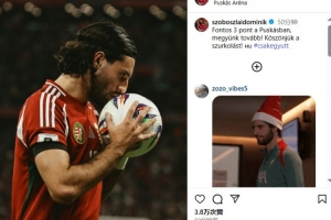 體育資訊10月13日訊 匈牙利在世預賽2-0擊敗亞美尼亞,匈牙利中場索博斯洛伊在球隊取勝后更新了個人社交媒體,并發(fā)布了一張自己親吻比賽用球的照片。