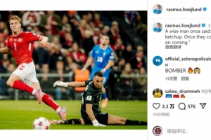 霍伊倫連續(xù)4場比賽取得進球,展現(xiàn)了良好的狀態(tài),他在社交媒體上寫道:“一位智者曾說過——進球如番茄醬,一旦開瓶,便源源不絕?!?/p>
