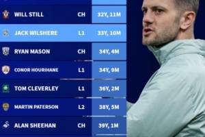 體育資訊10月14日訊 德國轉(zhuǎn)會(huì)市場盤點(diǎn)了英國前四級(jí)別聯(lián)賽球隊(duì)主教練年齡情況,盧頓新帥威爾希爾以33歲10個(gè)月成第三年輕主教練。