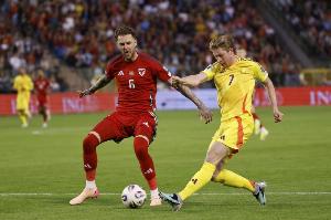 體育資訊10月14日訊 比利時對陣威爾士的比賽正在進(jìn)行中,比利時2-1領(lǐng)先,德布勞內(nèi)點射破門。