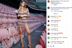 體育資訊9月13日訊 北京時(shí)間今晚凌晨12點(diǎn),意甲第3輪,意大利國(guó)家德比,尤文圖斯主場(chǎng)迎戰(zhàn)國(guó)米??ɡ餅跛蛊拮尤R奧塔是本場(chǎng)比賽的足球主持人。在大戰(zhàn)即將打響之際,萊奧塔通過(guò)社交分享自己在球場(chǎng)拍攝的性感照片,為意大利國(guó)家德比預(yù)熱,同時(shí)也驚艷了一大批粉絲。