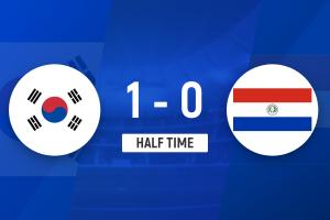 半場戰(zhàn)罷,韓國暫1-0巴拉圭。