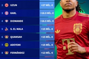 8、埃茲奎爾-費爾南德斯(勒沃庫森):+1300萬歐元