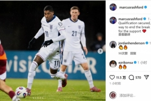 拉什福德此役為英格蘭替補(bǔ)出場(chǎng),賽后他在社交媒體上曬出比賽照片,配文:“獲得世界杯資格,以完美的方式結(jié)束這個(gè)國(guó)際比賽日。感謝大家的支持。”