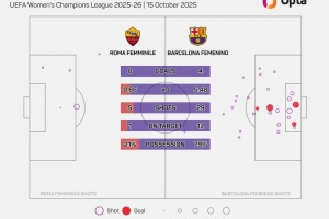 據(jù)Opta統(tǒng)計(jì),巴薩女足本賽季開局各賽事9連勝,打進(jìn)48球,僅丟2球,場(chǎng)均進(jìn)球超過5粒。
