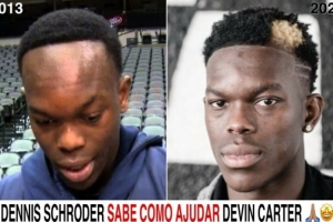 體育資訊10月16日訊 國(guó)外自媒體goatbr曬出了德文-卡特和隊(duì)友施羅德的發(fā)際線對(duì)比圖,并調(diào)侃到:“施羅德知道該怎么幫你?!?/p>
