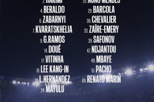體育資訊10月17日訊 北京時(shí)間明天凌晨2點(diǎn)45分,巴黎將在法甲第8輪比賽中主場對陣斯特拉斯堡,巴黎公布了此役的球員名單,克瓦拉茨赫利亞、杜埃回歸,登貝萊、馬爾基尼奧斯、法比安-魯伊斯、內(nèi)維斯繼續(xù)缺席。