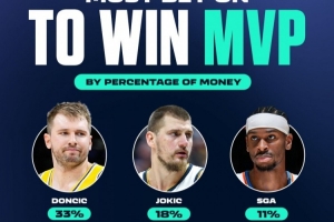 體育資訊10月17日訊 ESPN報道, 根據(jù)旗下ESPN Bet的數(shù)據(jù)顯示,東契奇是新賽季MVP投注選項中,投注金額最多的球員。在所有關于MVP的投注金額中,投注東契奇的比例高達33%。ESPN Bet配文:“大部分投注都押在東契奇身上,期待他拿下生涯首座MVP獎杯?!?/p>