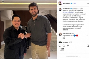 托希爾與皮克會(huì)面,他在社交媒體上曬出合照,配文:“與皮克會(huì)面,他是一位在足球最高級別賽事中贏得過多項(xiàng)冠軍頭銜的球員,包括俱樂部層面上的歐冠冠軍,以及代表西班牙國家隊(duì)贏得的歐洲杯和世界杯。我們討論了全球足球趨勢以及印尼足球的發(fā)展?!?/p>