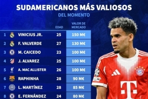 南美球員德轉(zhuǎn)身價(jià)排名: