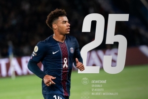 巴黎官方統(tǒng)計(jì),杜埃職業(yè)生涯至今參與25粒法甲進(jìn)球(13球12助),成為在法甲首位達(dá)成這一數(shù)據(jù)的2004年及之后出生球員,他出生于2005年6月3日。