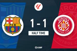 上半場補時2分鐘,巴薩1-1赫羅納。