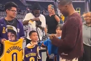 威少給小球迷的球衣簽名,簽了雷霆和火箭的唯獨(dú)略過了湖人的。