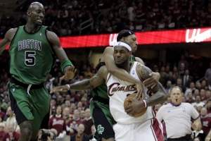 2010年東部半決賽(騎士VS綠軍)G4中,詹姆斯在完成后場搶斷后準(zhǔn)備上籃,緊隨身后的皮爾斯采取犯規(guī)戰(zhàn)術(shù),兩人互相抱著摔入了觀眾席。詹姆斯的母親在現(xiàn)場觀戰(zhàn)憤怒不已,詹姆斯在一旁對著母親大吼道:“Sit down!(你給我坐下?。?。