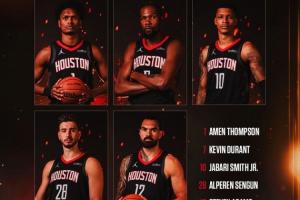 值得一提的是,這是一套“五大”陣容,五人身高分別為:阿門(mén)2米01、杜蘭特2米11、小史密斯2米11、申京2米11、亞當(dāng)斯2米11,首發(fā)平均身高為2米09。
