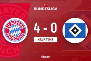 上半場(chǎng)比賽結(jié)束,拜仁慕尼黑4-0漢堡。