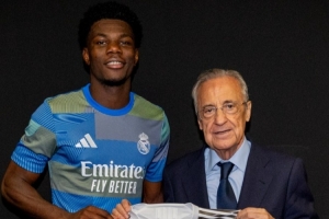 體育資訊9月14日訊 西甲第4輪,皇馬客戰(zhàn)皇家社會,瓊阿梅尼迎來皇馬生涯150場里程碑,皇馬主席弗洛倫蒂諾向這名中場球員贈送了150場紀(jì)念球衣。