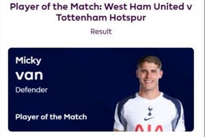 體育資訊9月14日訊 英超第4輪,熱刺客場3-0擊敗西漢姆。據(jù)英超官方消息,熱刺后衛(wèi)范德文被評為此役全場最佳,共獲56%的投票。