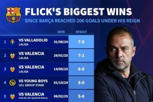 體育資訊10月21日訊 德國轉(zhuǎn)會市場統(tǒng)計了弗里克執(zhí)教巴薩以來的數(shù)據(jù),他帶隊參加71場比賽,打進201球。