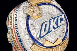 雷霆冠軍戒指:14K白金與黃金打造 鉆石鑲嵌球員號碼&內(nèi)嵌副戒