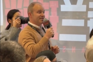 體育資訊10月22日訊 今天開拓者隊(duì)記Victor Sun在社媒曬出視頻,在球迷見面會(huì)上有外國球迷用不流利的中文努力向楊瀚森提問。