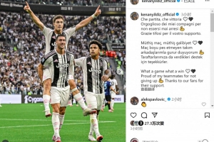 伊爾迪茲社媒曬出弗拉霍維奇背起他慶祝進球的照片,配文:“多么精彩的比賽,多么美妙的勝利!為我的隊友們沒有放棄感到驕傲,感謝球迷們的支持!”