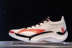 新出的馭帥20,也用最經(jīng)典白黑紅配色做了楊瀚森本人的PE配色,有他個人的專屬Logo,后跟處還有球衣號碼。