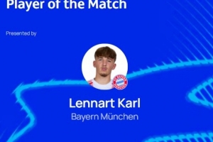 本場比賽拜仁17歲小將卡爾發(fā)揮出色,打進(jìn)球隊(duì)首粒進(jìn)球,賽后他也當(dāng)選歐冠官方評(píng)選出的本場最佳球員。