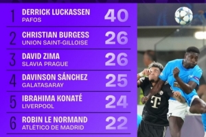 體育資訊10月23日訊 本賽季歐冠聯(lián)賽階段已戰(zhàn)罷3輪,Squawka統(tǒng)計(jì)了到目前為止的對(duì)抗獲勝榜單,卡拉巴赫后衛(wèi)馬修斯-席爾瓦33次第一,比利亞雷亞爾后衛(wèi)圣地亞哥-穆里尼奧28次第二。