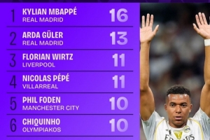 1.姆巴佩(皇馬):16