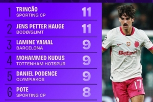 體育資訊10月23日訊 本賽季歐冠聯(lián)賽階段已戰(zhàn)罷3輪,Squawka統(tǒng)計了到目前為止完成過人榜單,葡體前鋒特林康和博德閃耀攻擊手海于格都是11次,分列前二。